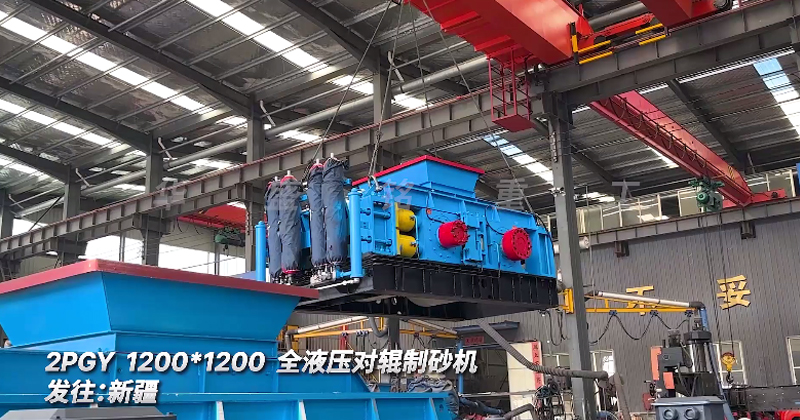 全液壓對輥制砂機2PGY.1200*1200發(fā)往:新疆