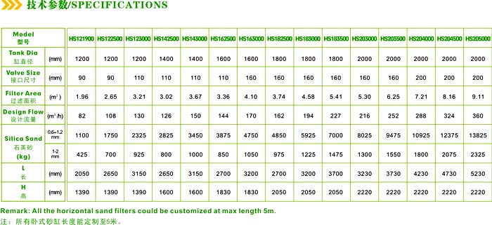 直徑2000mm的濾床高度: 1m